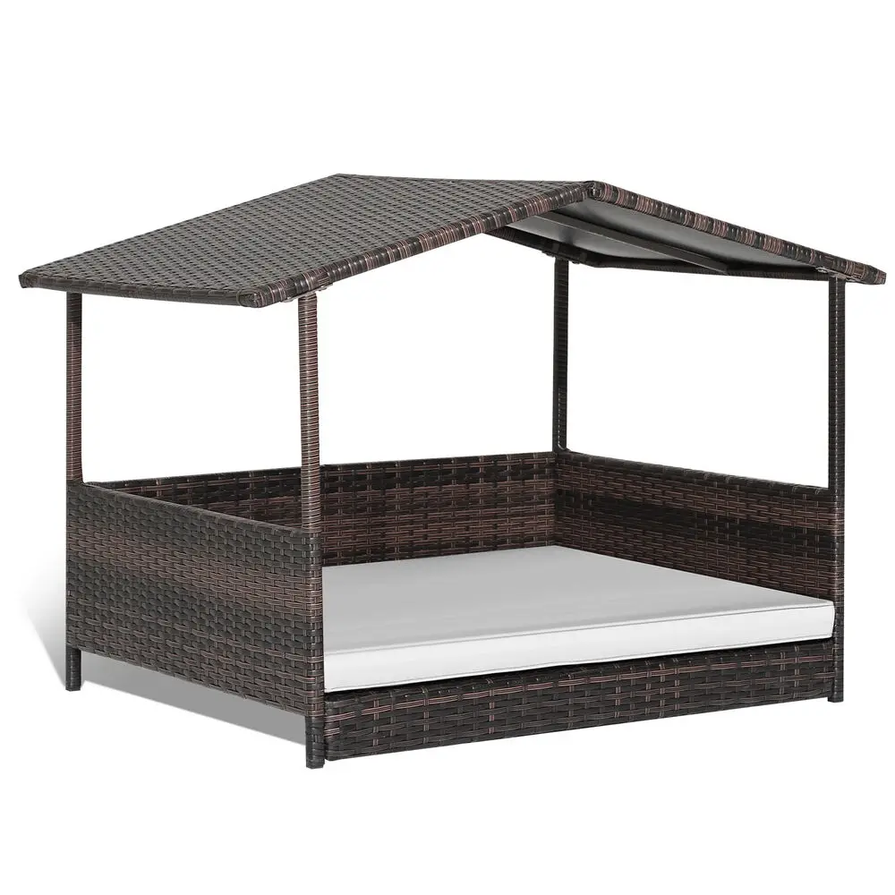C asa de mimbre para perros Costway con cojín para salón cama elevada de ratán para interiores/exteriores